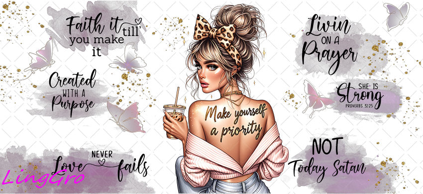 Afro Pray Black Woman 16oz UV DTF TRANSFER Libbey Glass Can Cup Wrap-KA-2028