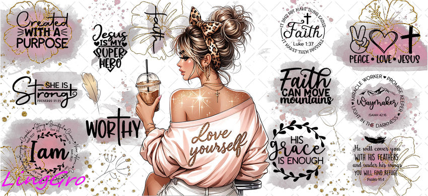 Afro Pray Black Woman 16oz UV DTF TRANSFER Libbey Glass Can Cup Wrap-KA-2032
