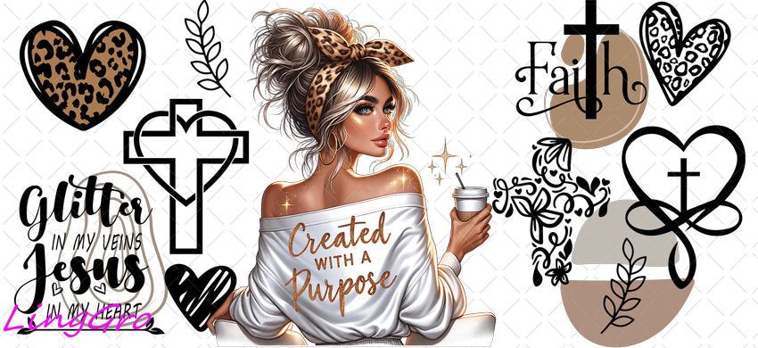Afro Pray Black Woman 16oz UV DTF TRANSFER Libbey Glass Can Cup Wrap-KA-2034
