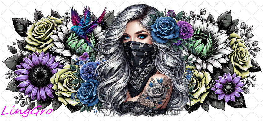 Badass Tattoo Girl 16oz UV DTF TRANSFER Libbey Glass Can Cup Wrap-KA-437