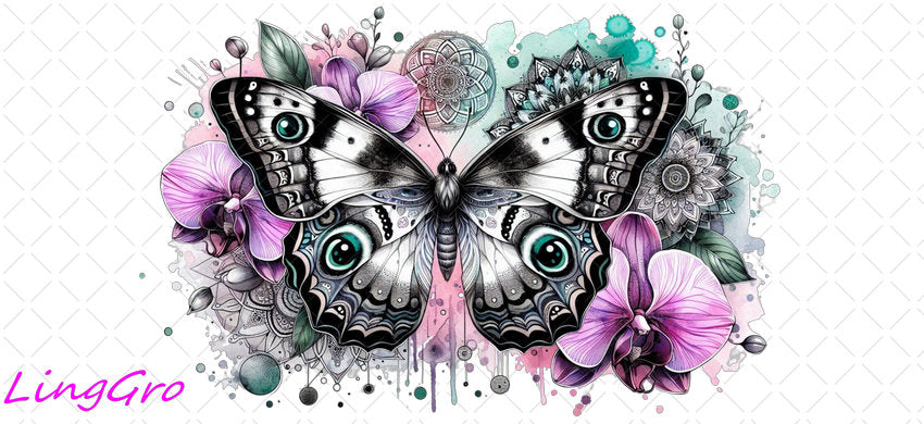 Butterfly 16oz UV DTF TRANSFER Libbey Glass Can Cup Wrap-KA-214